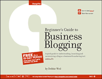 Debbie Weil, one of the most prominent business blogging experts and the author of the "ROI of Business Blogging" e-book, just recently released a free e-book titled the "Beginners Guide to Business Blogging", through ChangeThis.