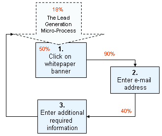 The other optimization route is optimizing the actual micro-actions that form the micro-process, for example optimizing the whitepaper banner in such a way that a higher % of first-time visitors take notice of it and click on it.